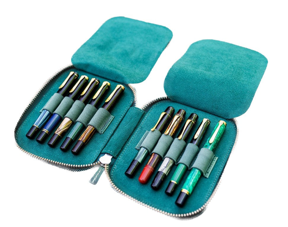 Galen Leather - Leather Zippered 10 Slot Pen Case - Crazy Horse Forest Green