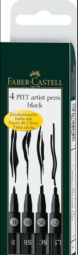Pitt Artist Pen Black Box of 4 (SB, SC, 1.5, B) - Blesket Canada