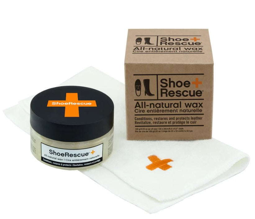 ShoeRescue Wax is a creamy, super-spreadable blend of all-natural ingredients, including beeswax and coconut oil.